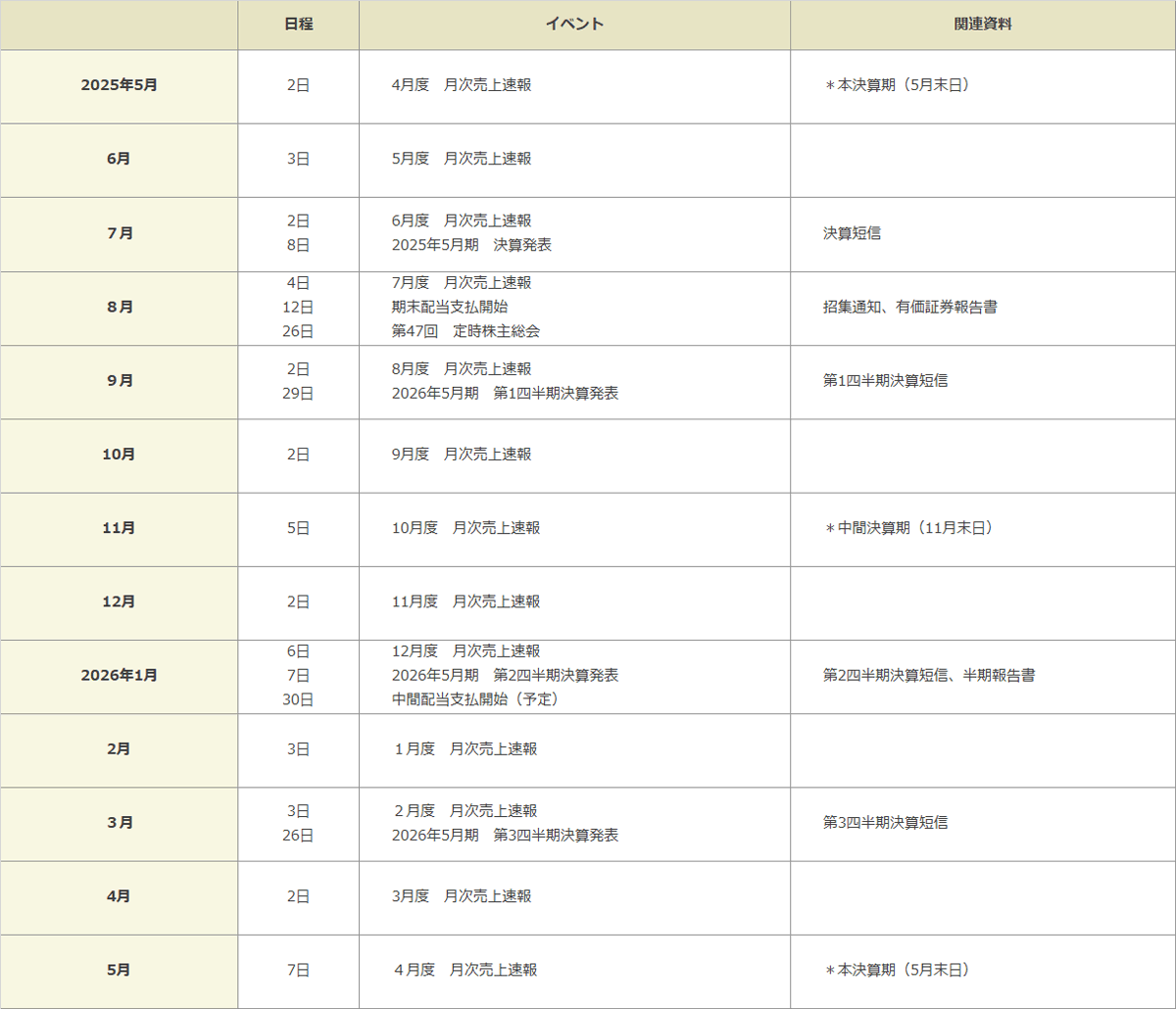 当社のIRイベントの予定は次の通りです。下記の日程は都合により変更されることがあります。